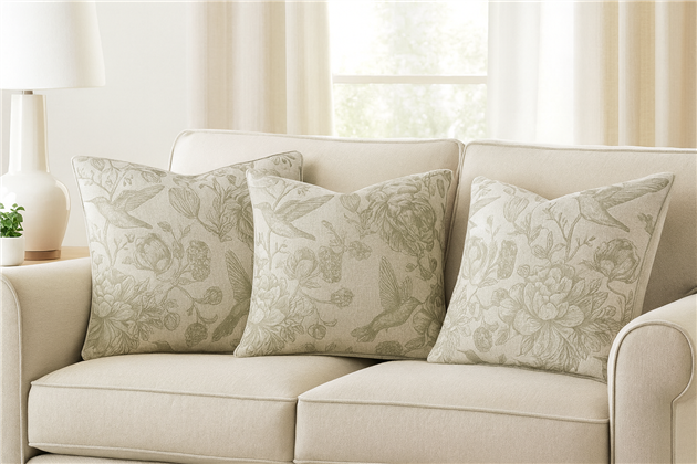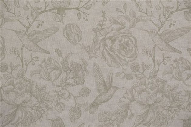 A beautiful pattern featuring graceful hummingbirds and a traditional floral design. This design gives a spring calming feel, bringing the nature to the interior. Made from cotton.
