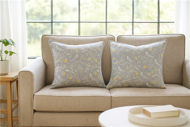 Annika is a stylish fabric that can be used for bespoke cushions. A neutral background with a small blend of colour it creates a feel good look in your chosen space.