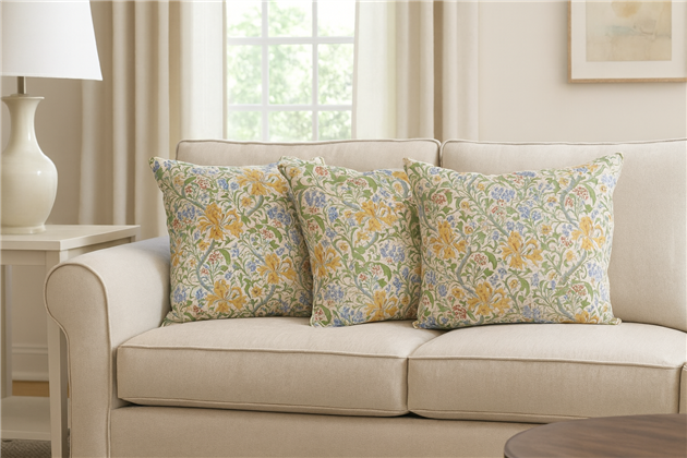 A beautiful floral design in soft pastel colours. Made from 85% cotton and 15% polyster. This fabric is ideal for brightening up any interior with a spring feel.