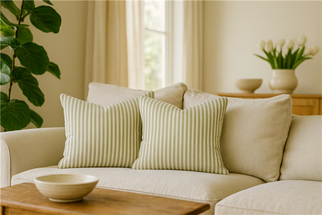Empire 01 Stripe Sage is one of Ian Mankin’s original designs, firmly establishing it as a classic stripe that stands the test of time. This dense herringbone is woven in 100% cotton and delivers durability, and makes it highly practical for upholstery, curtains, blinds, cushions and home accessories.