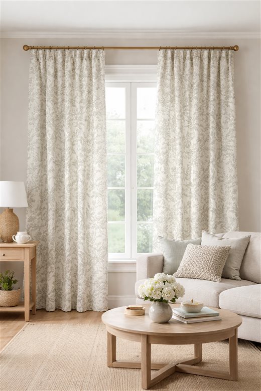Effortlessly elegant, Fern Fabric is crafted from a premium blend of 45% cotton, 44% viscose, and 11% linen, offering both softness and durability. Featuring a delicate leaves and trees design, this timeless fabric brings natural charm and sophistication to any interior.