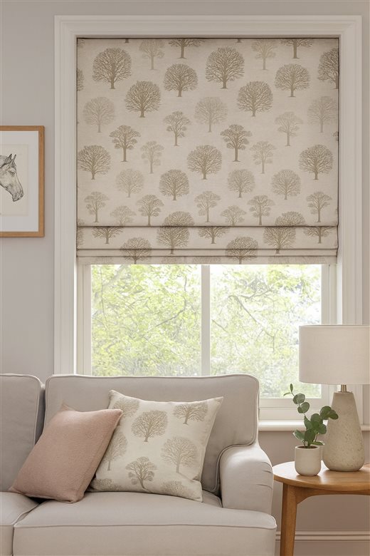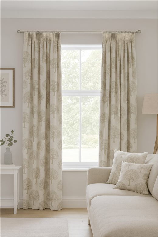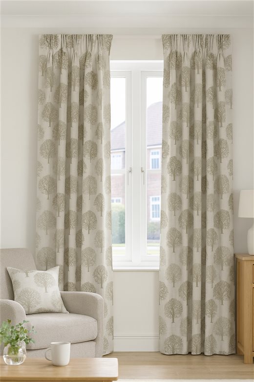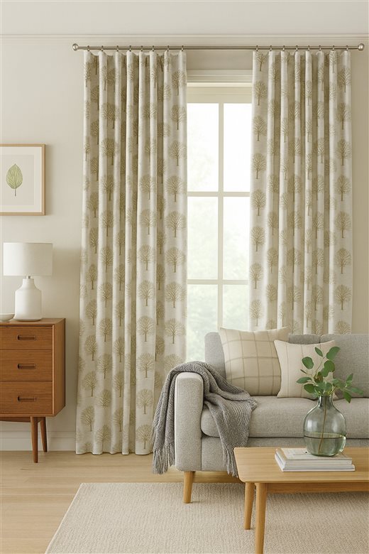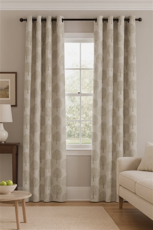 Sienna Fabric is a stunning tree print design on a neutral background. This fabris is made from 100% cotton. It is ideal for making handmade bespoke curtains or blinds.