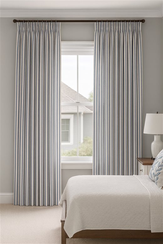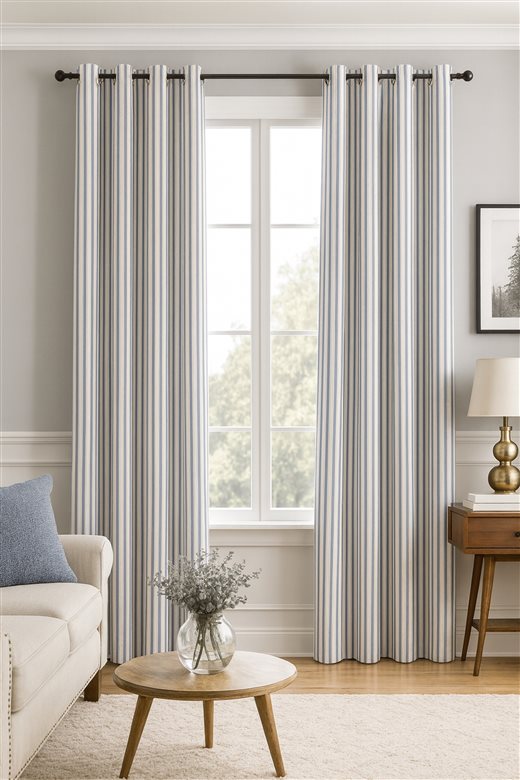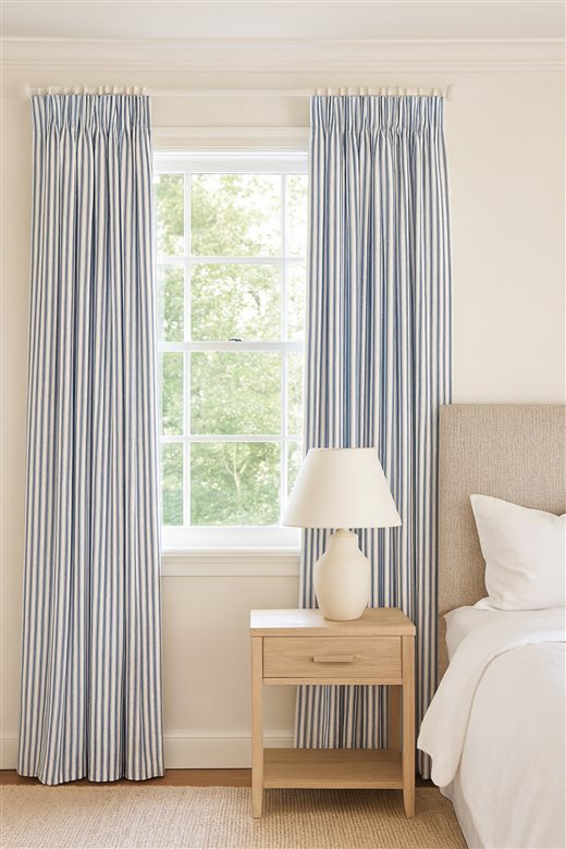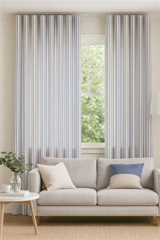 A classic design, Ticking Stripe 1 Airforce is a traditional ticking stripe fabric comprising cool muted blue and warm white tones. The dense herringbone weave, which features centralised Ian Mankin ticking stripes in this design, delivers durability and makes it highly practical for upholstery, curtains, blinds, cushions and home accessories.