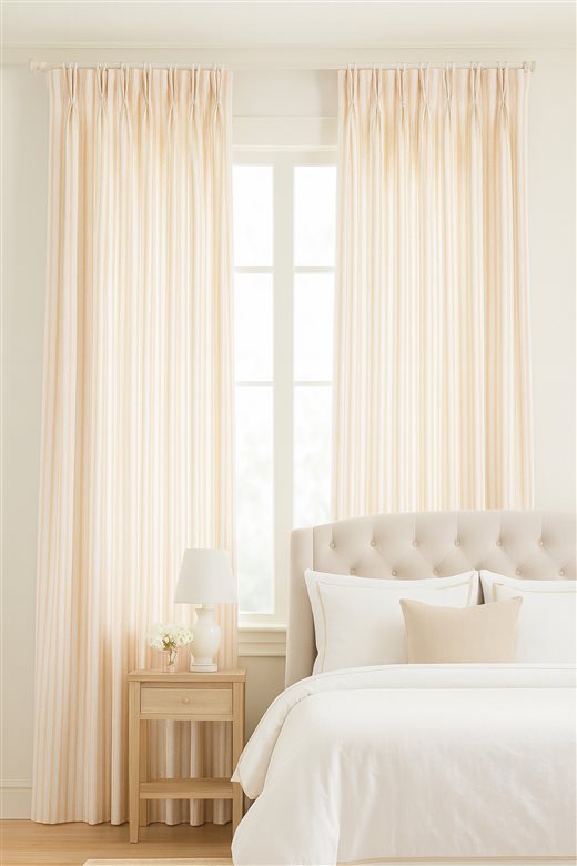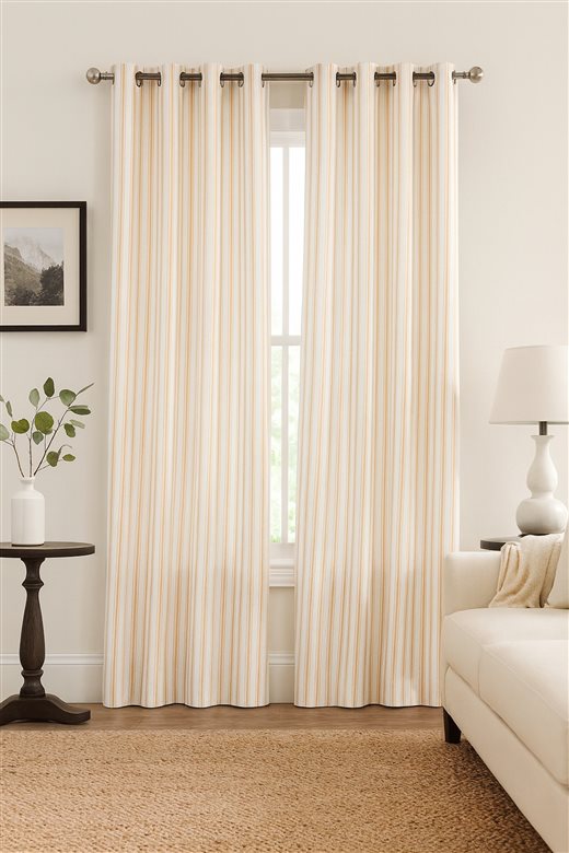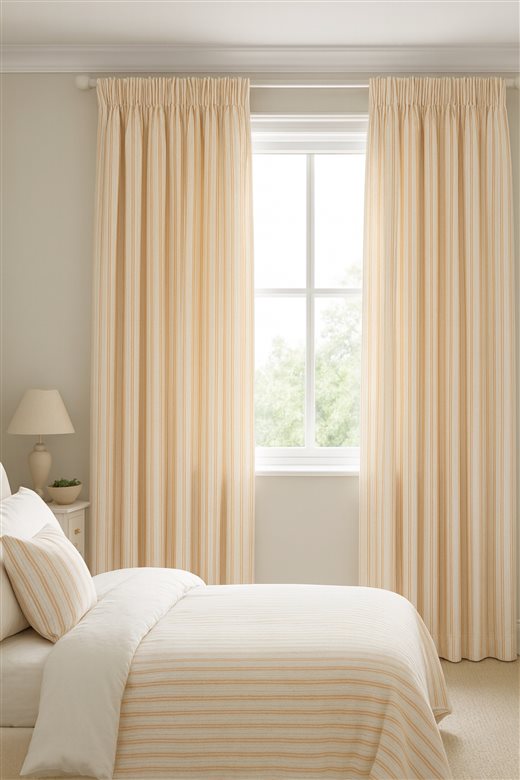A classic design, Ticking Stripe 1 Apricot is a traditional ticking stripe fabric comprising peachy orange and crisp white tones. The dense herringbone weave, which features centralised Ian Mankin ticking stripes in this design, delivers durability and makes it highly practical for upholstery, curtains, blinds, cushions and home accessories.