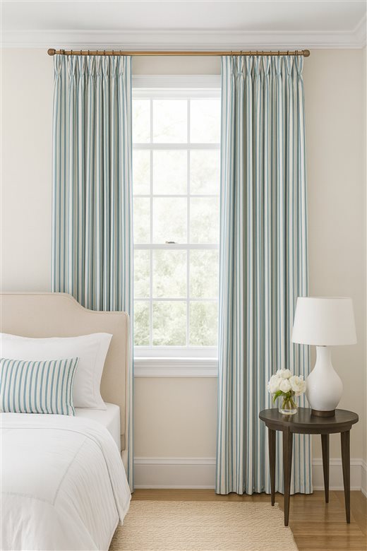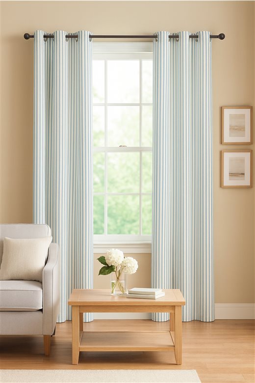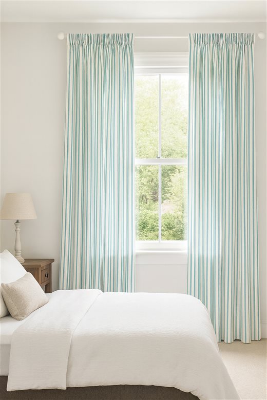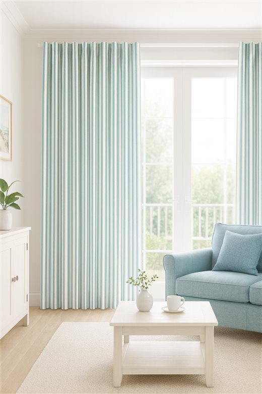A classic design, Ticking Stripe 1 Aqua is a traditional ticking stripe fabric comprising vibrant turquoise and crisp white tones. The dense herringbone weave, which features centralised Ian Mankin ticking stripes in this design, delivers durability and makes it highly practical for upholstery, curtains, blinds, cushions and home accessories.