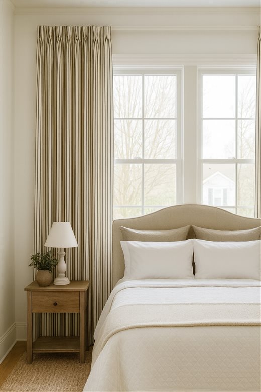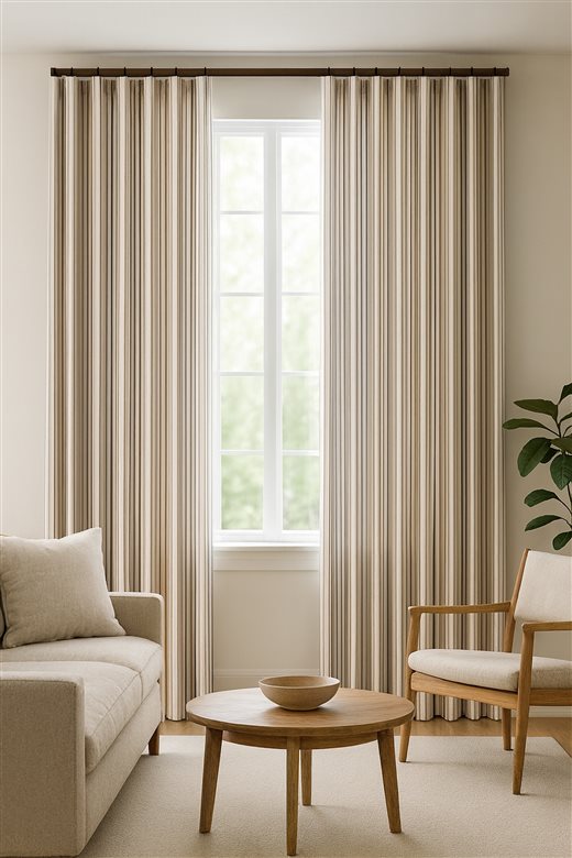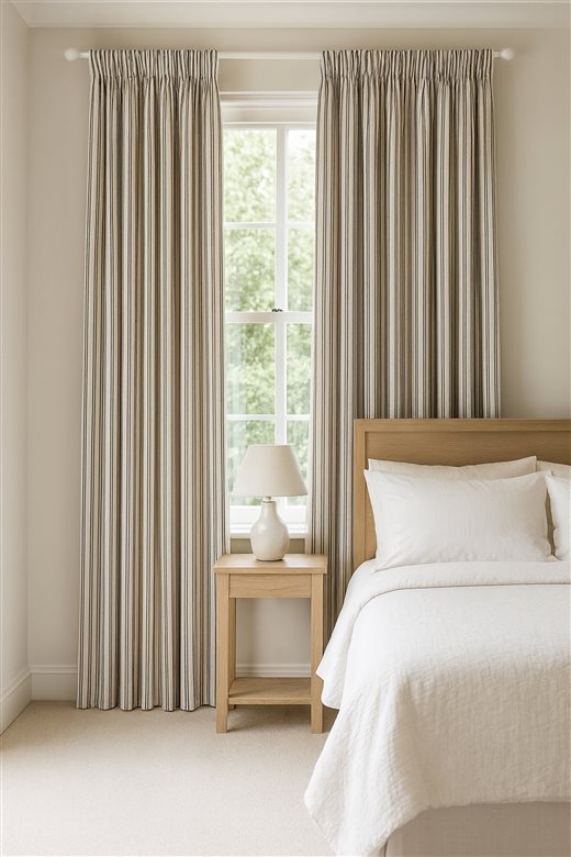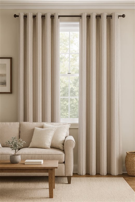 A classic design, Ticking Stripe 1 Brown is a 100% cotton ticking stripe fabric comprising cream and brown tones. The dense herringbone weave, which features centralised Ian Mankin ticking stripes in this design, delivers durability and makes it highly practical for upholstery, curtains, blinds, cushions and home accessories.