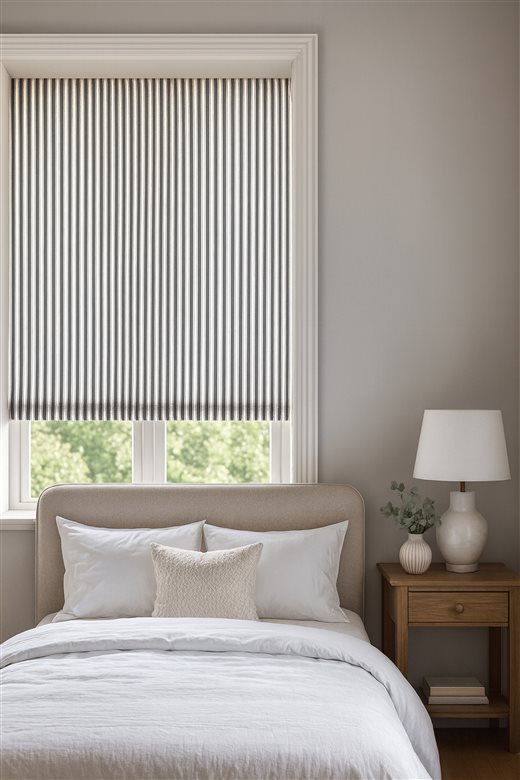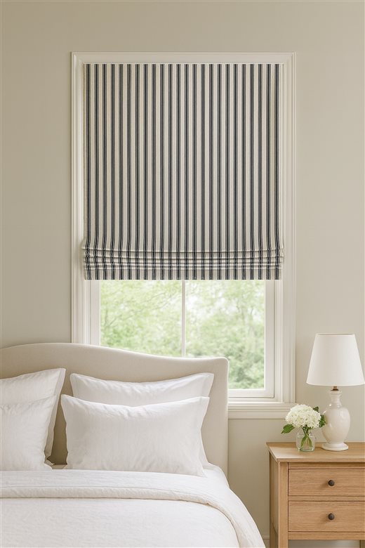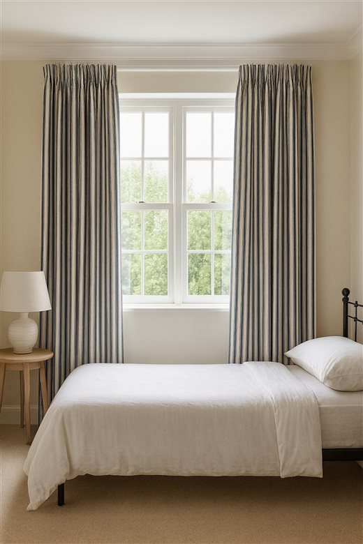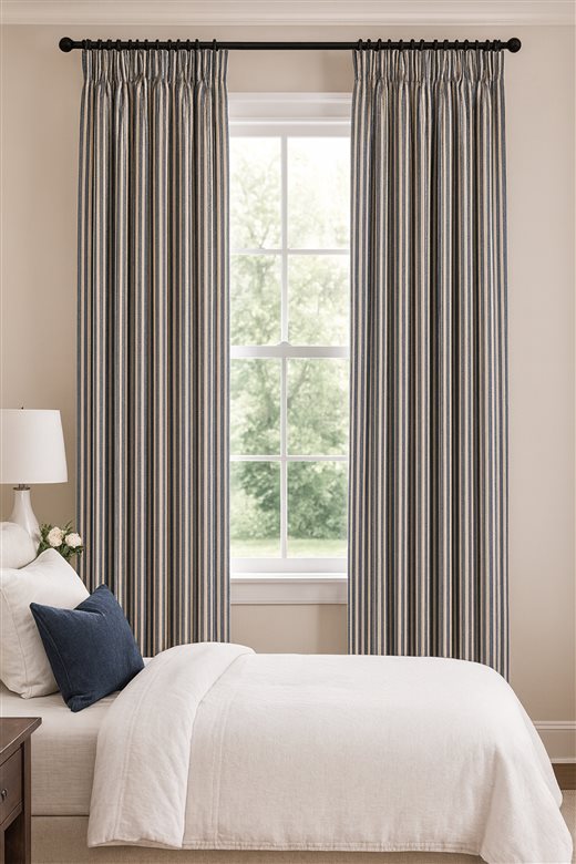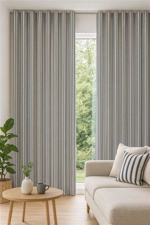 A classic design, Ticking Stripe 1 Dark Navy is a traditional ticking stripe fabric comprising deep rich navy and warm white tones. The dense herringbone weave, which features centralised Ian Mankin ticking stripes in this design, delivers durability and makes it highly practical for upholstery, curtains, blinds, cushions and home accessories.