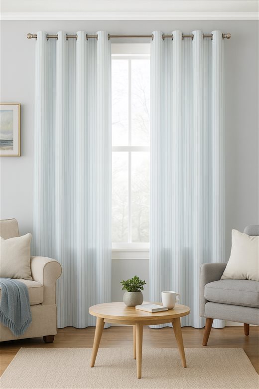 A classic design, Ticking Stripe 1 Duck Egg is a traditional ticking stripe fabric comprising cool blue and crisp white tones. The dense herringbone weave, which features centralised Ian Mankin ticking stripes in this design, delivers durability and makes it highly practical for upholstery, curtains, blinds, cushions and home accessories.