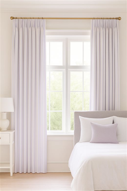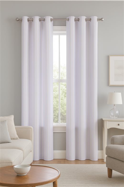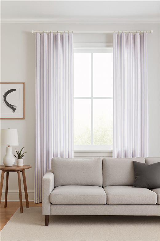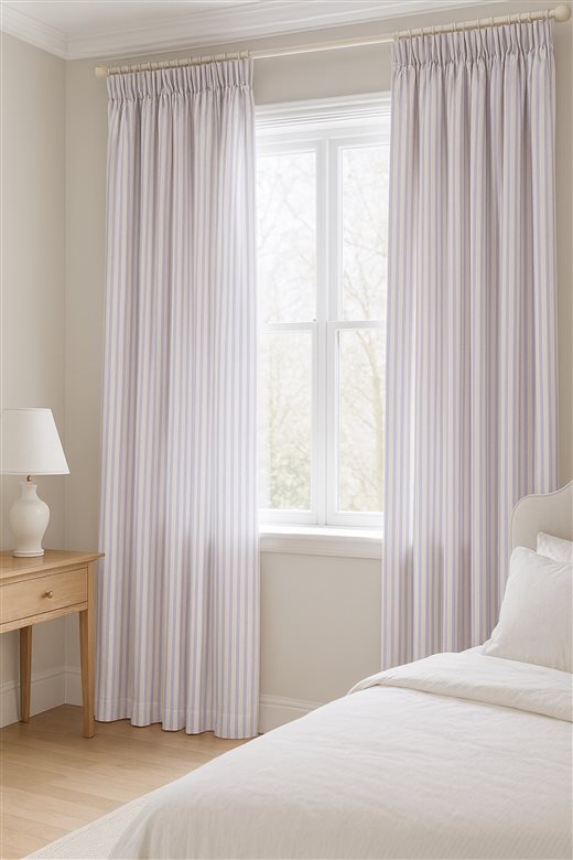 A classic design, Ticking Stripe 1 Lilac is a traditional ticking stripe fabric comprising pastel purple and crisp white tones. The dense herringbone weave, which features centralised Ian Mankin ticking stripes in this design, delivers durability and makes it highly practical for upholstery, curtains, blinds, cushions and home accessories.