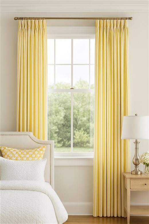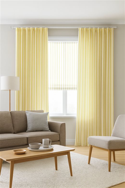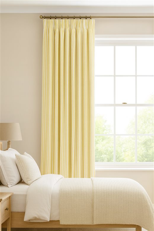 A classic design, Ticking Stripe 1 Ochre is a traditional ticking stripe fabric comprising mustard yellow and crisp white tones. The dense herringbone weave, which features centralised Ian Mankin ticking stripes in this design, delivers durability and makes it highly practical for upholstery, curtains, blinds, cushions and home accessories.