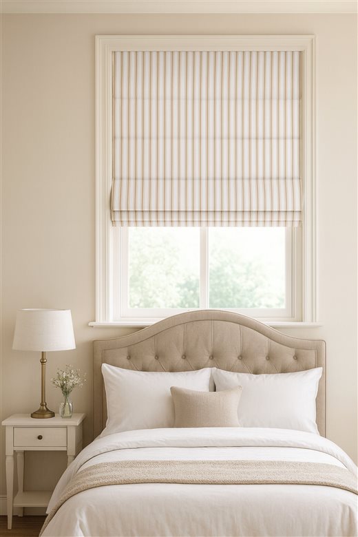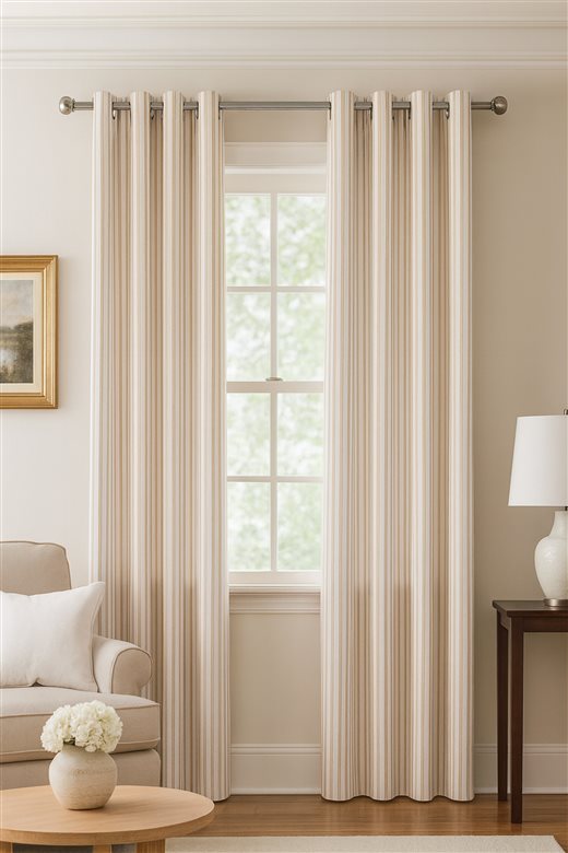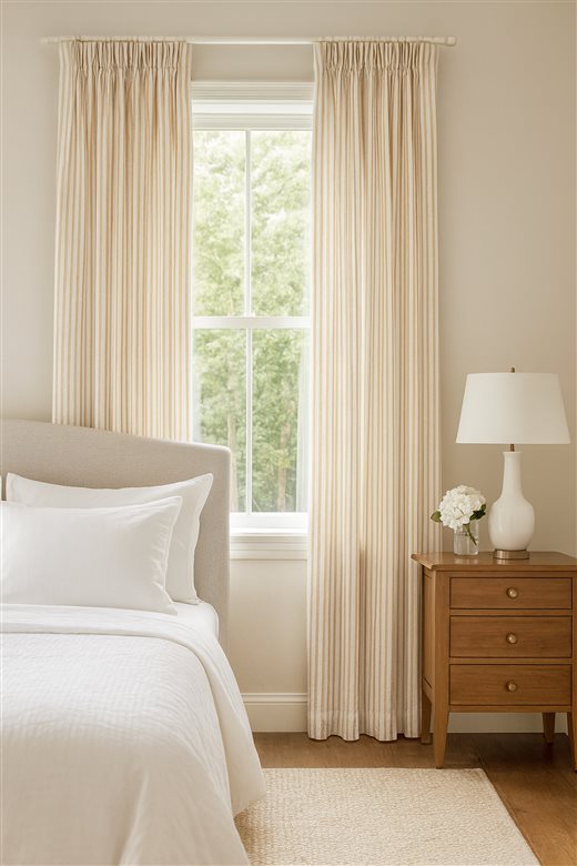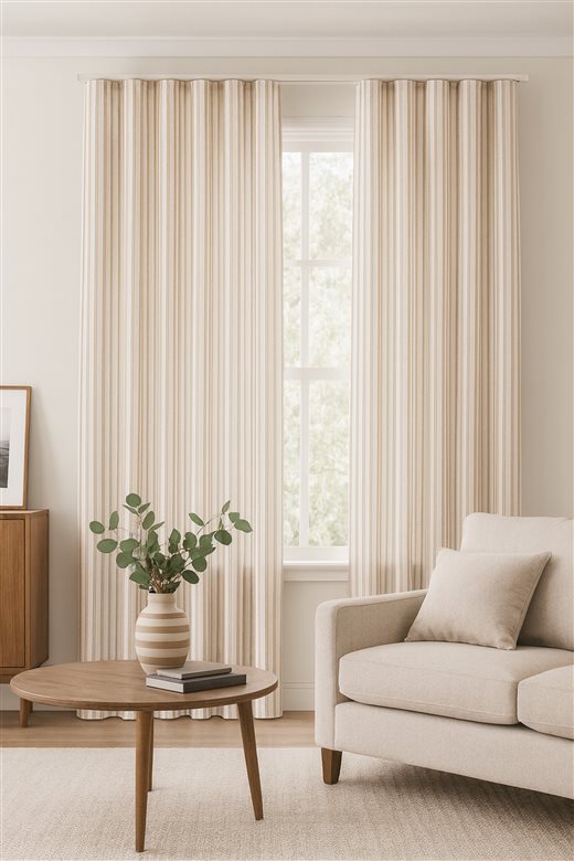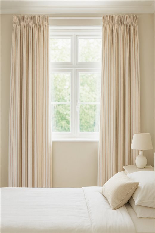 A classic design, Ticking Stripe 1 Powder is a traditional ticking stripe fabric comprising dusky nude and crisp white tones. The dense herringbone weave, which features centralised Ian Mankin ticking stripes in this design, delivers durability and makes it highly practical for upholstery, curtains, blinds, cushions and home accessories.