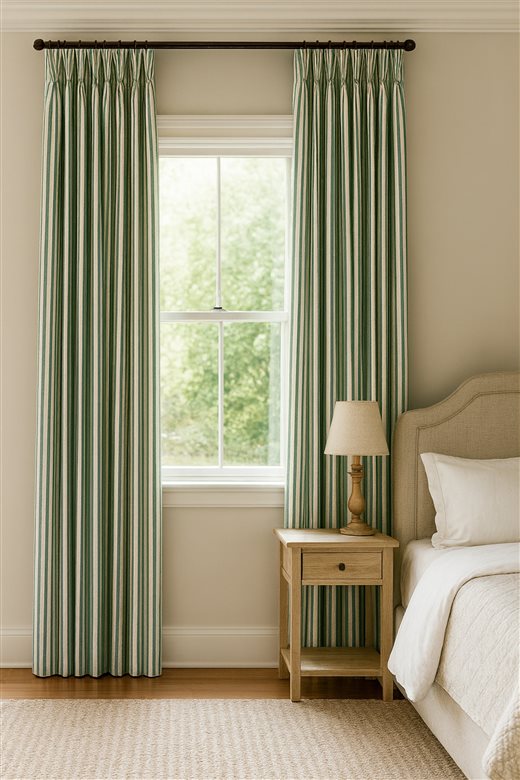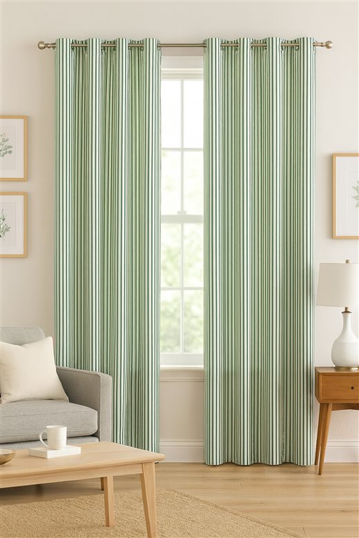 A classic design, Ticking Stripe 1 Racing Green is a traditional ticking stripe fabric comprising of rich green and crisp white tones. The dense herringbone weave, which features centralised Ian Mankin ticking stripes in this design, delivers durability and makes it highly practical for upholstery, curtains, blinds, cushions and home accessories.