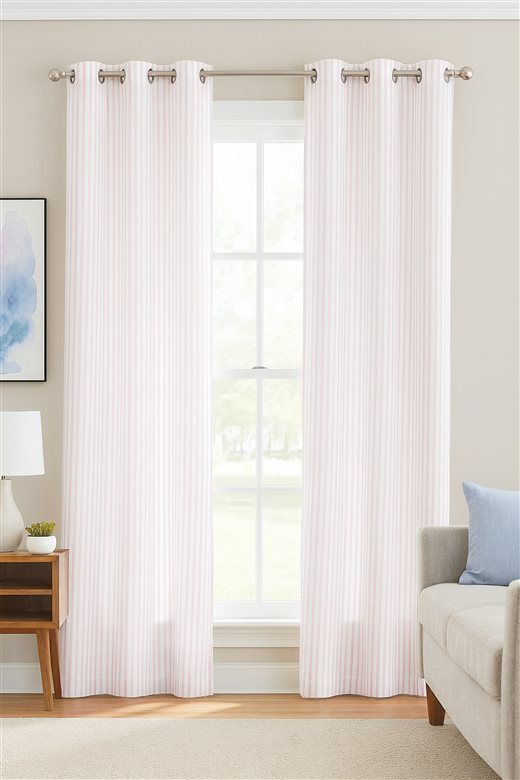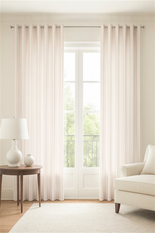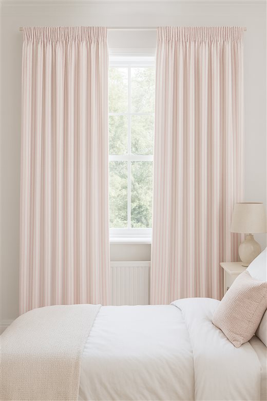 A classic design, Ticking Stripe 1 Rose is a traditional ticking stripe fabric comprising pastel pink and crisp white tones. The dense herringbone weave, which features centralised Ian Mankin ticking stripes in this design, delivers durability and makes it highly practical for upholstery, curtains, blinds, cushions and home accessories.