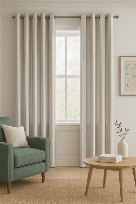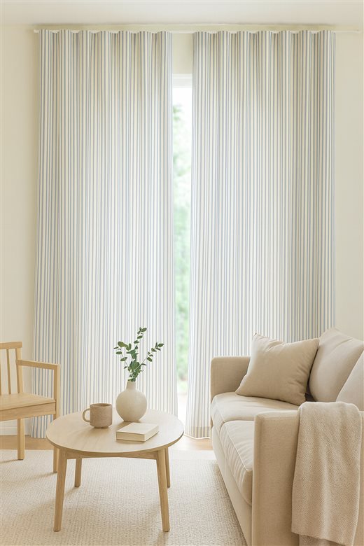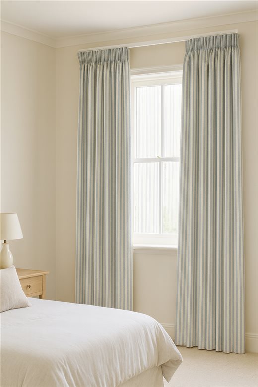 A classic design, Ticking Stripe 1 Seagreen is a traditional ticking stripe fabric comprising fresh turquoise and warm white tones. The dense herringbone weave, which features centralised Ian Mankin ticking stripes in this design, delivers durability and makes it highly practical for upholstery, curtains, blinds, cushions and home accessories.