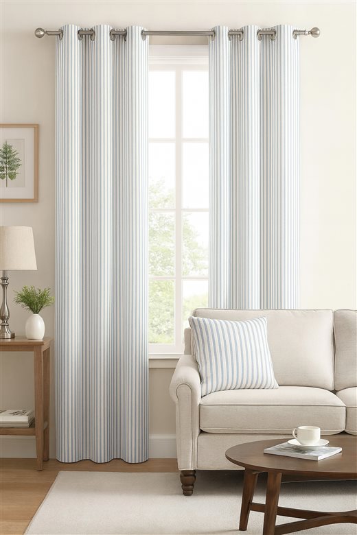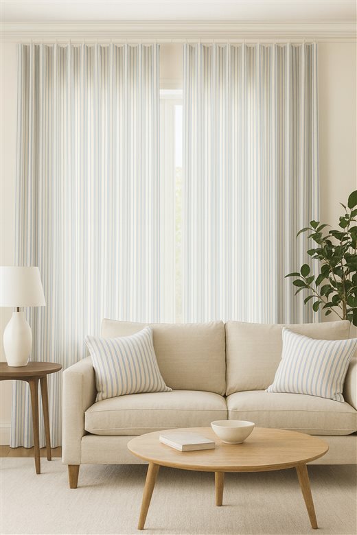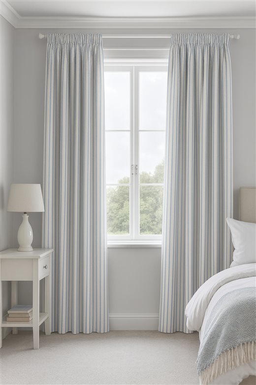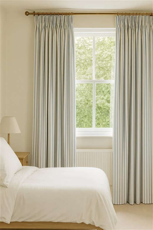 A classic design, Ticking Stripe 1 Sky is a traditional ticking stripe fabric comprising bright blue and warm white tones. The dense herringbone weave, which features centralised Ian Mankin ticking stripes in this design, delivers durability and makes it highly practical for upholstery, curtains, blinds, cushions and home accessories.