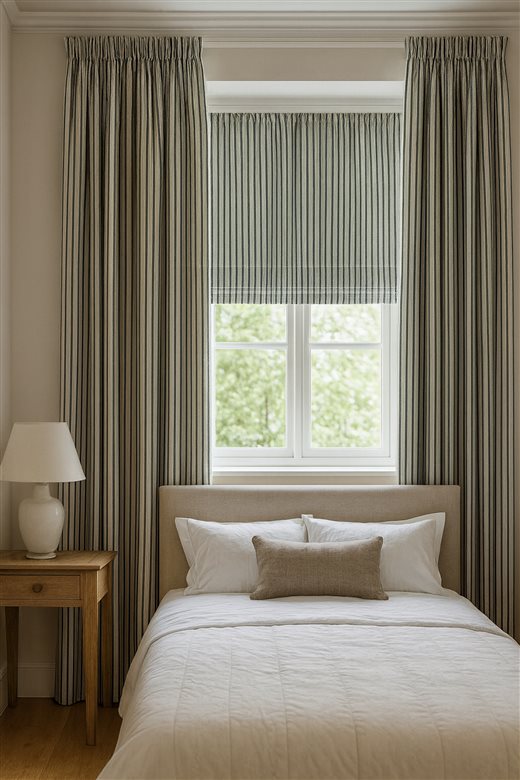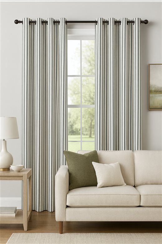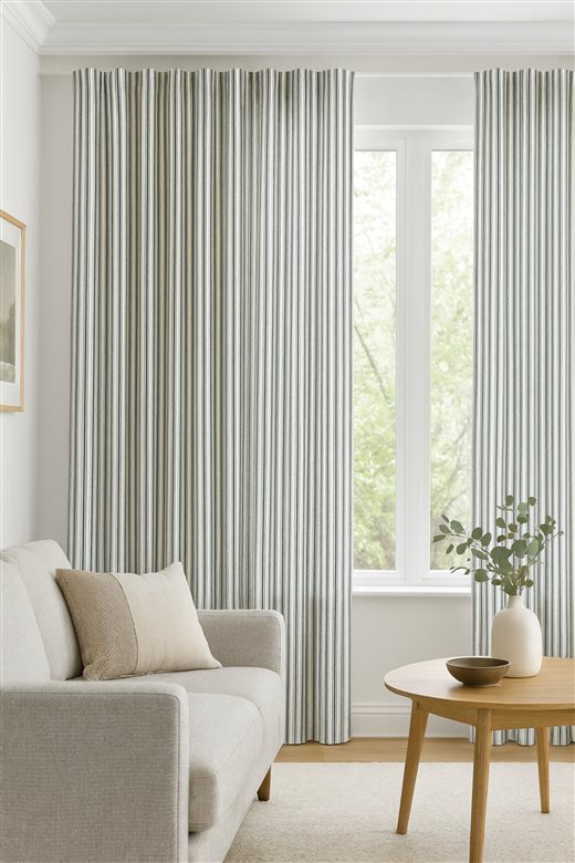 A classic design, Ticking Stripe 1 Smoke is a traditional ticking stripe fabric comprising deep grey and crisp white tones. The dense herringbone weave, which features centralised Ian Mankin ticking stripes in this design, delivers durability and makes it highly practical for upholstery, curtains, blinds, cushions and home accessories.