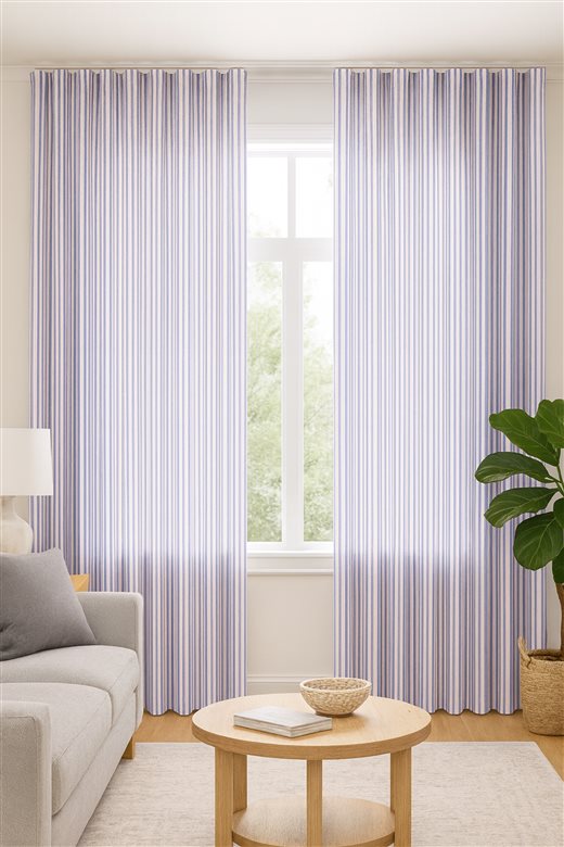 A classic design, Ticking Stripe 1 Violet is a traditional ticking stripe fabric comprising cool purple and crisp white tones. The dense herringbone weave, which features centralised Ian Mankin ticking stripes in this design, delivers durability and makes it highly practical for upholstery, curtains, blinds, cushions and home accessories.