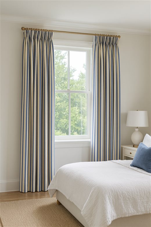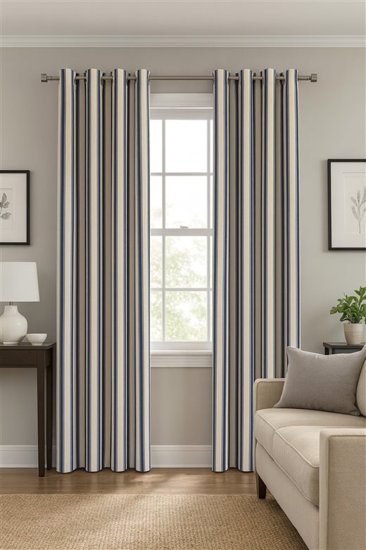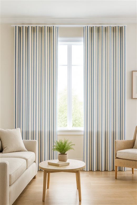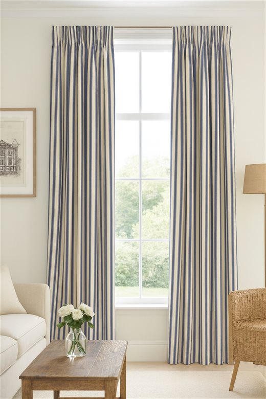 A classic design, Ticking Stripe 2 Airforce is a traditional ticking stripe fabric comprising cool muted Blue and warm white tones. The dense herringbone weave, which features centralised Ian Mankin ticking stripes in this design, delivers durability and makes it highly practical for upholstery, curtains, blinds, cushions and home accessories.