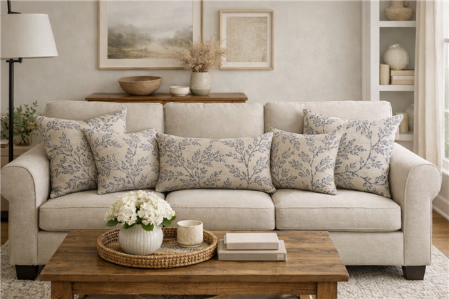 Effortlessly elegant, Fern Fabric is crafted from a premium blend of 45% cotton, 44% viscose, and 11% linen, offering both softness and durability. Featuring a delicate leaves and trees design, this timeless fabric brings natural charm and sophistication to any interior.