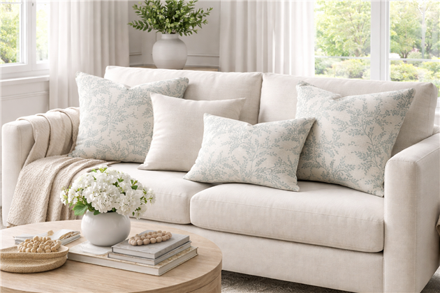 Effortlessly elegant, Fern Fabric is crafted from a premium blend of 45% cotton, 44% viscose, and 11% linen, offering both softness and durability. Featuring a delicate leaves and trees design, this timeless fabric brings natural charm and sophistication to any interior.