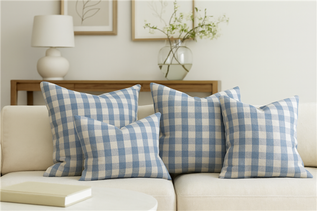 A large-scale, versatile checked fabric crafted from a blend of cotton and linen. Perfect for cushions.
