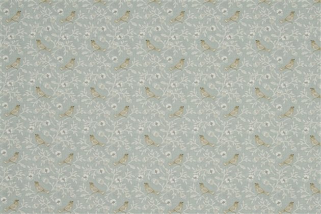 Paloma is evocative of an English garden in springtime, this 100% cotton fabric printed in a soft palette of duck egg blue and grey with soft gold accent