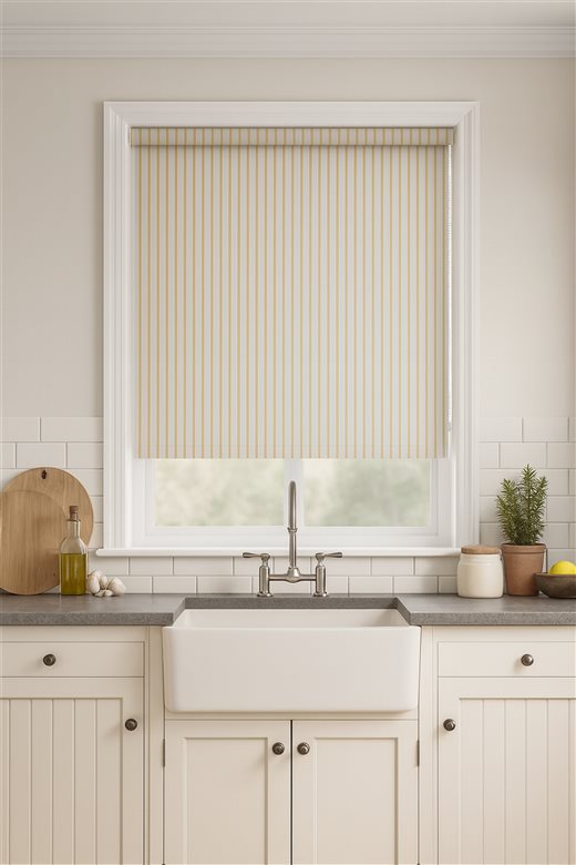Create your roller blinds in Atlanta Ochre below. All of our made to measure roller blinds are available with either cotton or blackout lining and are wound up and down with a sidewinder chrome bead chain mechanism. Call us on 0800 121 6370 if you'd like any advice from our resident blind experts.
