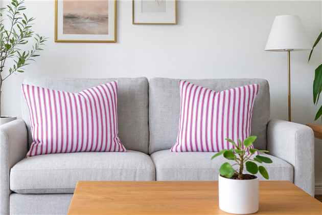 A classic design, Ticking Stripe 1 Cerise is a traditional ticking stripe fabric comprising vibrant pink and crisp white tones. The dense herringbone weave, which features centralised Ian Mankin ticking stripes in this design, delivers durability and makes it highly practical for upholstery, curtains, blinds, cushions and home accessories.