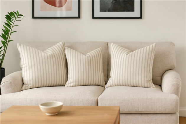 A classic design, Ticking Stripe 1 Cream is a 100% cotton ticking stripe fabric comprising cream and warm white tones. The dense herringbone weave, which features centralised Ian Mankin ticking stripes in this design, delivers durability and makes it highly practical for upholstery, curtains, blinds, cushions and home accessories.