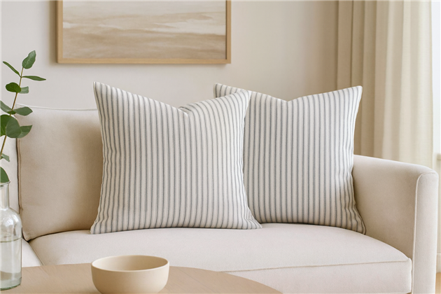 A classic design, Ticking Stripe 1 Dark Grey is a traditional ticking stripe fabric comprising deep grey and crisp white tones. The dense herringbone weave, which features centralised Ian Mankin ticking stripes in this design, delivers durability and makes it highly practical for upholstery, curtains, blinds, cushions and home accessories.