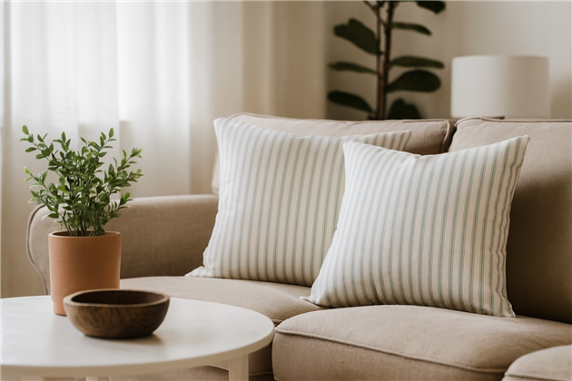 A classic design, Ticking Stripe 1 Mint is a traditional ticking stripe fabric comprising cool mint and warm white tones. The dense herringbone weave, which features centralised Ian Mankin ticking stripes in this design, delivers durability and makes it highly practical for upholstery, curtains, blinds, cushions and home accessories.