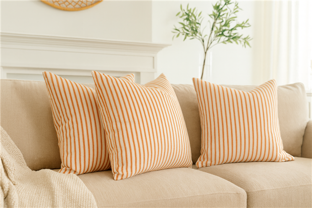 A classic design, Ticking Stripe 1 Orange is a traditional ticking stripe fabric comprising vibrant orange and crisp white tones. The dense herringbone weave, which features centralised Ian Mankin ticking stripes in this design, delivers durability and makes it highly practical for upholstery, curtains, blinds, cushions and home accessories.