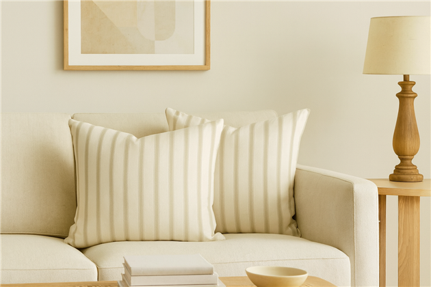 A classic design, Ticking Stripe 2 Cream is a traditional ticking stripe fabric comprising cream and warm white tones. The dense herringbone weave, which features centralised Ian Mankin ticking stripes in this design, delivers durability and makes it highly practical for upholstery, curtains, blinds, cushions and home accessories.