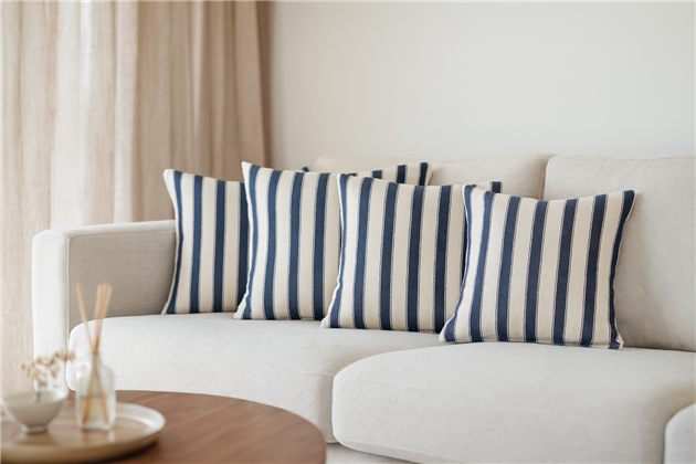 A classic design, Ticking Stripe 2 Navy is a traditional ticking stripe fabric comprising rich navy and warm white tones. The dense herringbone weave, which features centralised Ian Mankin ticking stripes in this design, delivers durability and makes it highly practical for upholstery, curtains, blinds, cushions and home accessories.