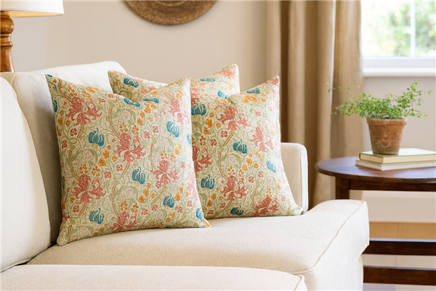 Tullia is a floral design in beautiful bright, fresh colours. Made from 85% Cotton, 15% Polyester